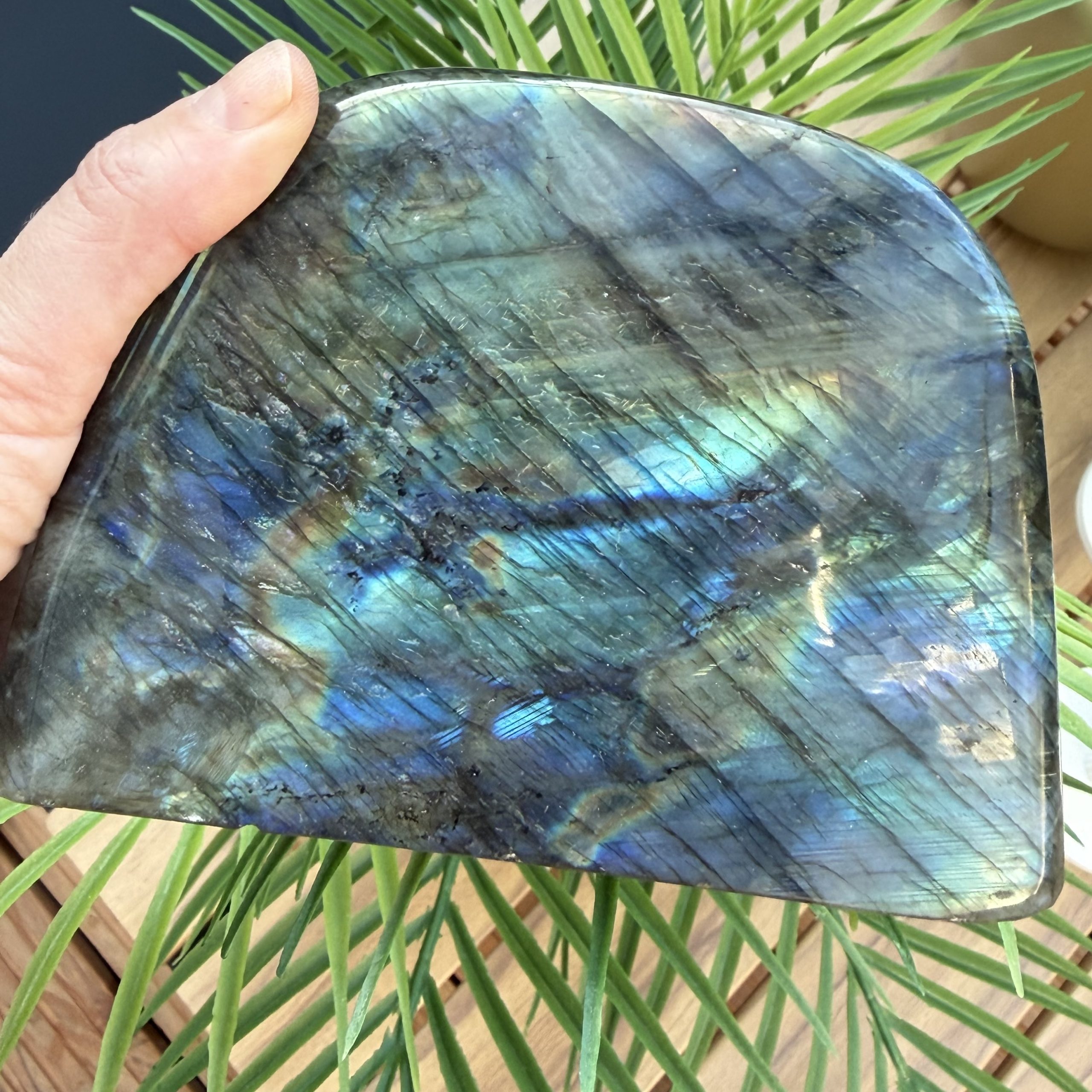 Labradoriet is een sterk beschermende en spirituele steen. Het beschermt het eigen energieveld (aura) tegen negatieve invloeden uit de omgeving en mensen die energie bij je wegnemen. De steen vermindert angst en geeft kracht, (zelf)vertrouwen en doorzettingsvermogen.