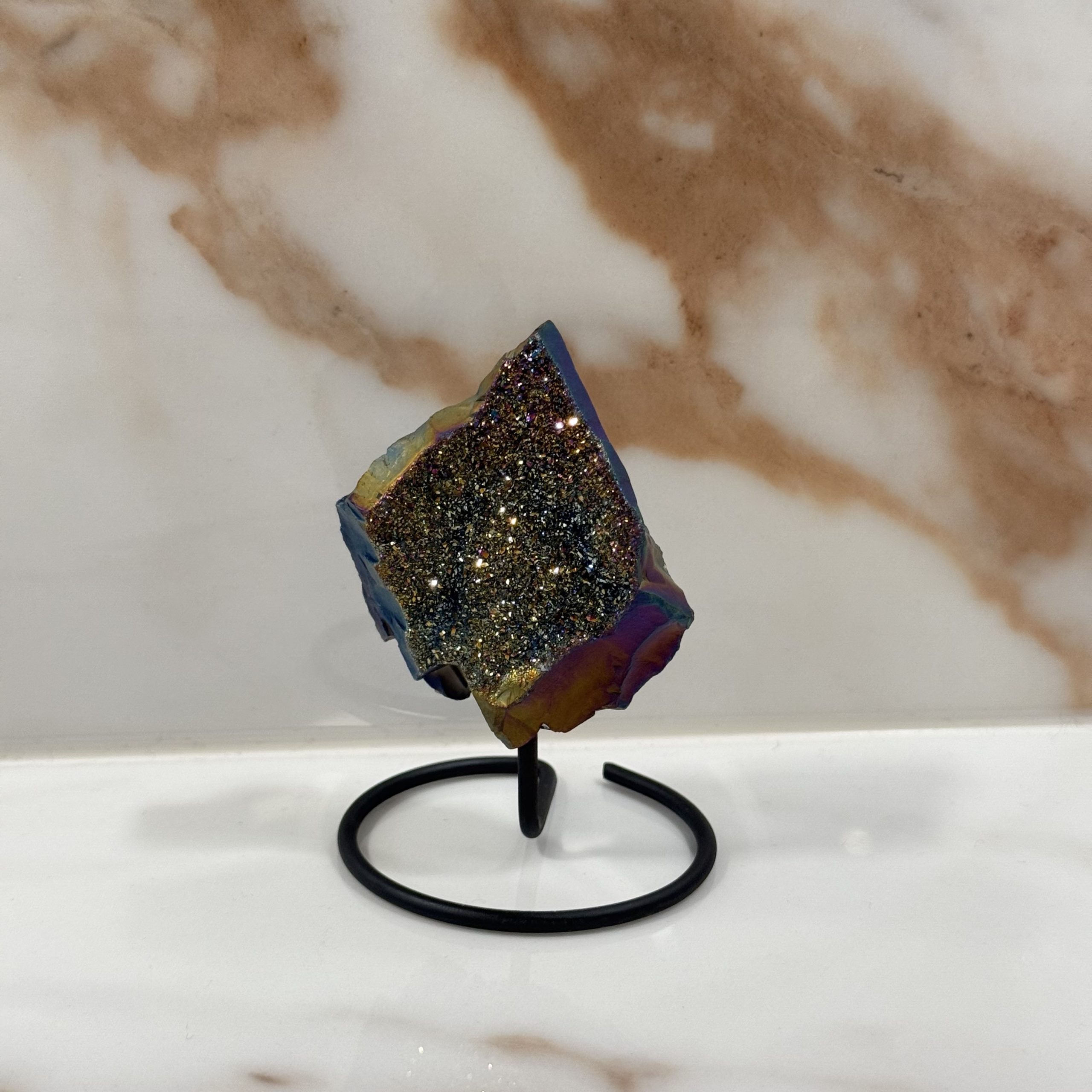Titanium aura “Amethist gecoat” mini op standaard #392